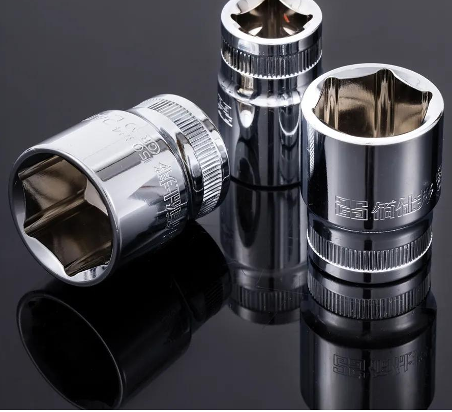4、 套筒根據它的總長度來分一般有長短套和短套筒之分。6.3mm系列(1/4”系列)短套的長度一般為24.5mm,長套的長度一般為49mm;10mm系列(3/8”系列)短套的長度一般為25mm,長套的長度一般為64mm;12.5mm系列(1/2”系列)短套的長度一般為38mm,長套的長度一般為78mm;19mm系列(3/4”系列)的長度常用的有56mm和80mm;25mm系列(1/”系列)的長度常用的有80mm和90mm。