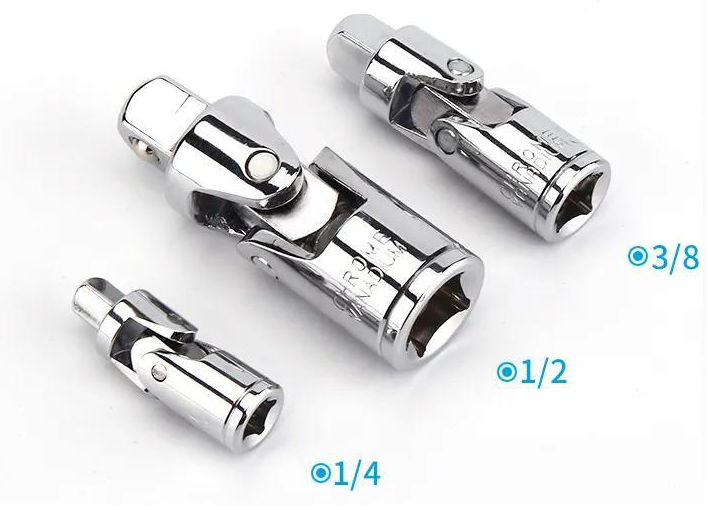 2、 萬象節:我們都知道套筒是直的,并沒有角度,在實際使用套筒的場合里,有些需要一些傾斜角度才能正常受力,這個時候就需要用到萬向節。萬向節顧名思義就是可以轉換方向,一般更大角度可以到45度。